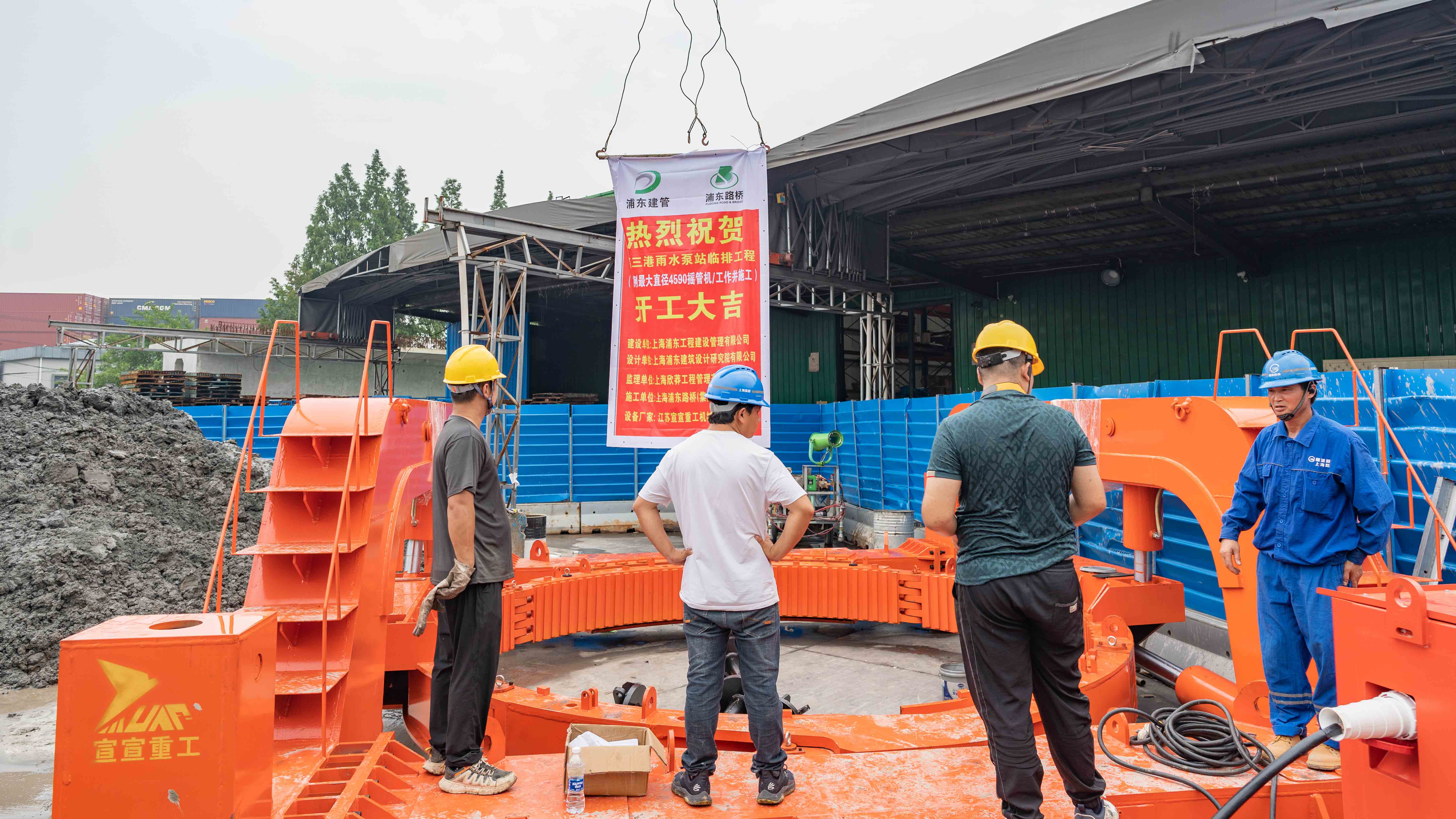 上海浦東三港雨水泵站臨排項目。直徑4590搖管機,井深14米,鋼護(hù)筒壁厚40mm。